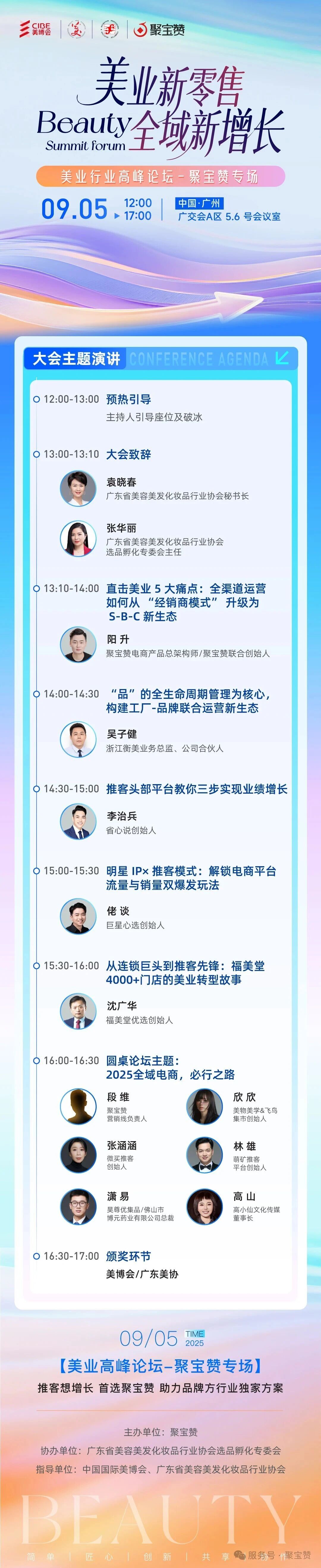 9月5日下午13:00-17:00,由聚寶贊主辦的美業(yè)全域增長高峰論壇,將在廣州廣交會A區(qū)1樓5.6號會議室舉辦。